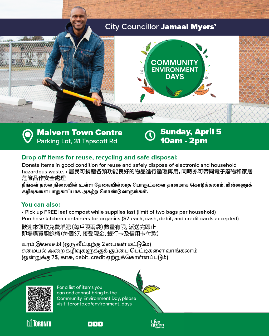 Free compost will be available at four neighbourhood locations across Scarborough North in May. Stay tuned for upcoming messages from my office with full dates and locations!